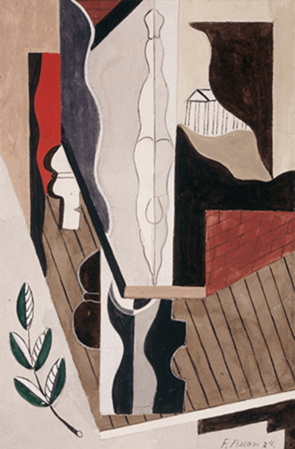 Bacon used to insist that his professional artistic career began in 1944, it is well known that he was painting much earlier than that. His first known paintings, ‘Watercolour’ and ‘Gouache’, were created during this early period and were directly inspired by Pablo Picasso whose style is very apparent in these works. Bacon adopts Pablo’s signature abstract shapes combined with flat, muted colours- something starkly different to the more vivid and bold art seen later in Francis’ career.